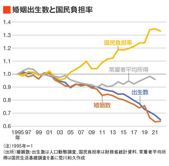 中間層が「結婚・出産」できない日本の悲しい現実 国民負担率が増えれば増えるほど婚姻・出生が減少の写真一覧