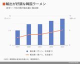 韓国国産のラーメン輸出額が2023年1~7月に初めて5億ドル(約737億円)を突破したことがわかった。韓国産…
