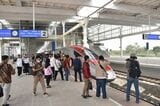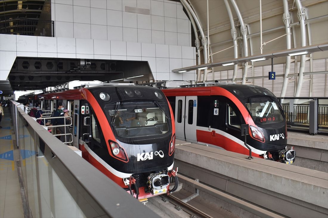 記事に戻る インドネシア高速鉄道、「試乗会」で見えた実力 最高時速は350km、「中国式」らしさはある?の写真一覧 開放感のあるジャカルタ―バンドン高速鉄道のジャカルタ側ターミナル、ハリム駅(筆者撮影) 1/50 下に画像が続きます ハリム駅のアクセスを担うLRT Jabodebek。乗り換え客を考慮してハリム駅では停車時間を長めに取っている(筆者撮影) 2/50