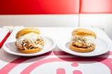 記事に戻る 赤羽「ドムドムバーガー復活」にファン驚喜のワケ どむぞうくんグッズも人気、物販は売上の7%にの写真一覧 2023年7月28日に「復活」したドムドムハンバーガー赤羽イオンスタイル店。ポップなロゴやマークを活かしたおしゃれな空間だ(撮影:今井康一) 1/7 下に画像が続きます ドムドムの一番人気、甘辛チキンバーガー(写真右、460円)。ドムドムハンバーガーの日として記念日登録された10月6日からの5日間、甘辛チキンバーガーを注文すると、値段はそのままにチキンを2.3倍にしたビッグサイズの甘辛チキンバーガー(左)が提供された(撮影:今井康一) 2/7