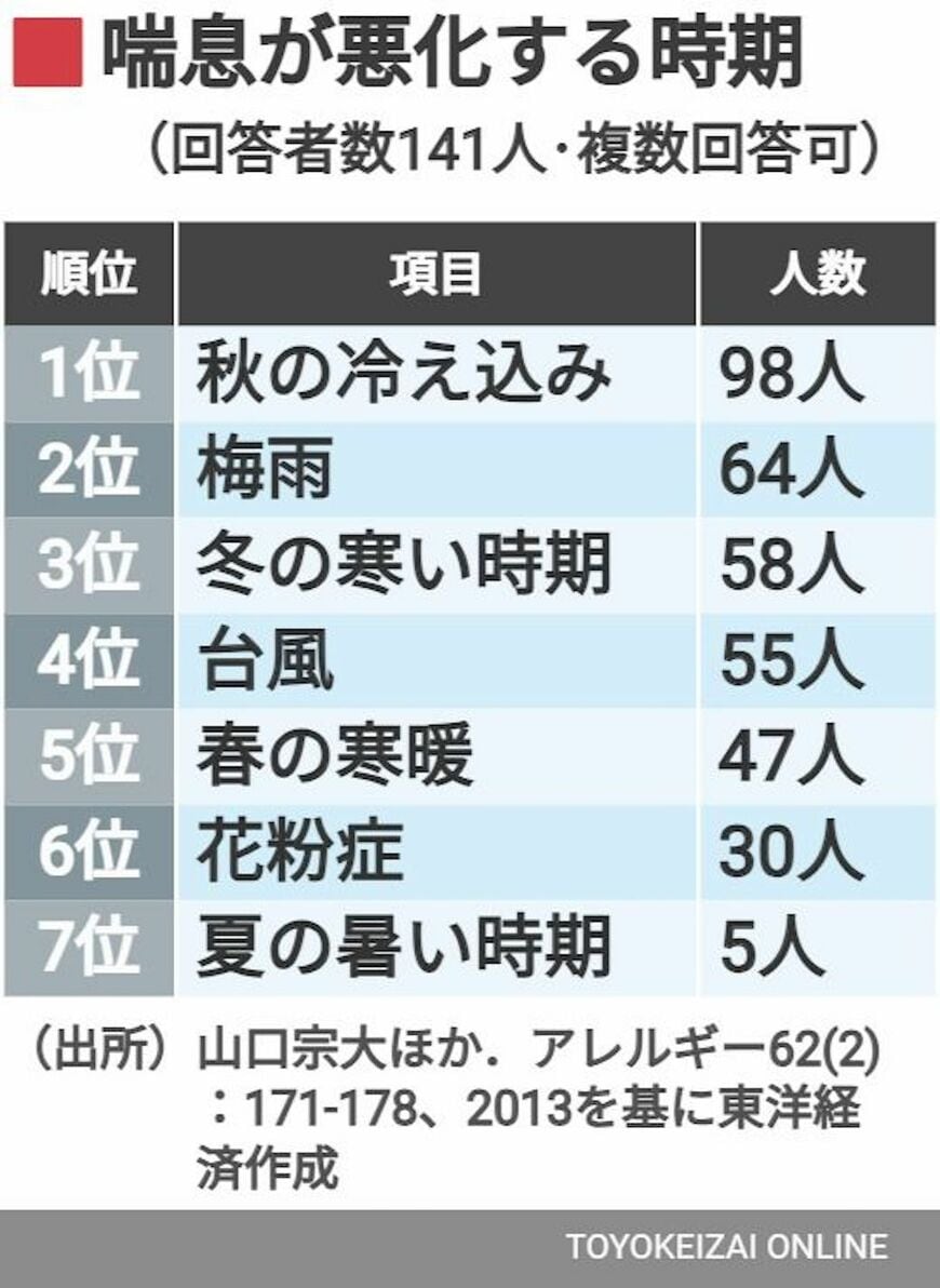 大人でも発症「ぜん息」注意すべき季節と"前ぶれ" 実態調査「症状を抑えられず仕事や生活に支障」の写真一覧