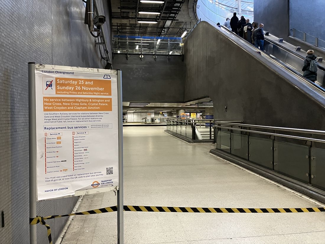 記事に戻る 築180年、英で現役「川底の鉄道トンネル」の秘密 列車運休し徒歩見学会、SL時代の面影も残るの写真一覧 ロンドン・オーバーグラウンドのロザーハイズ駅。トンネルはここから掘り始められた(筆者撮影) 1/42 下に画像が続きます トンネル見学会当日に張り出された「当該路線全線運休」のお知らせ(カナダウォーター駅で筆者撮影) 2/42
