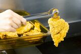 記事に戻る クリスマスチキン戦線開いた「モスチキン」の軌跡 「チキンの向き」にも影響した、社内体制の変化の写真一覧 1992年に発売されたモスチキン(1本320円・5本パック1500円)。米粉を使用したカリカリッとした食感と、しょうゆベースの和風味が特徴。冷めてもおいしく食べられるよう開発されている(撮影:今井康一) 1/8 下に画像が続きます モスチキン5本パック1500円(撮影:今井康一) 2/8