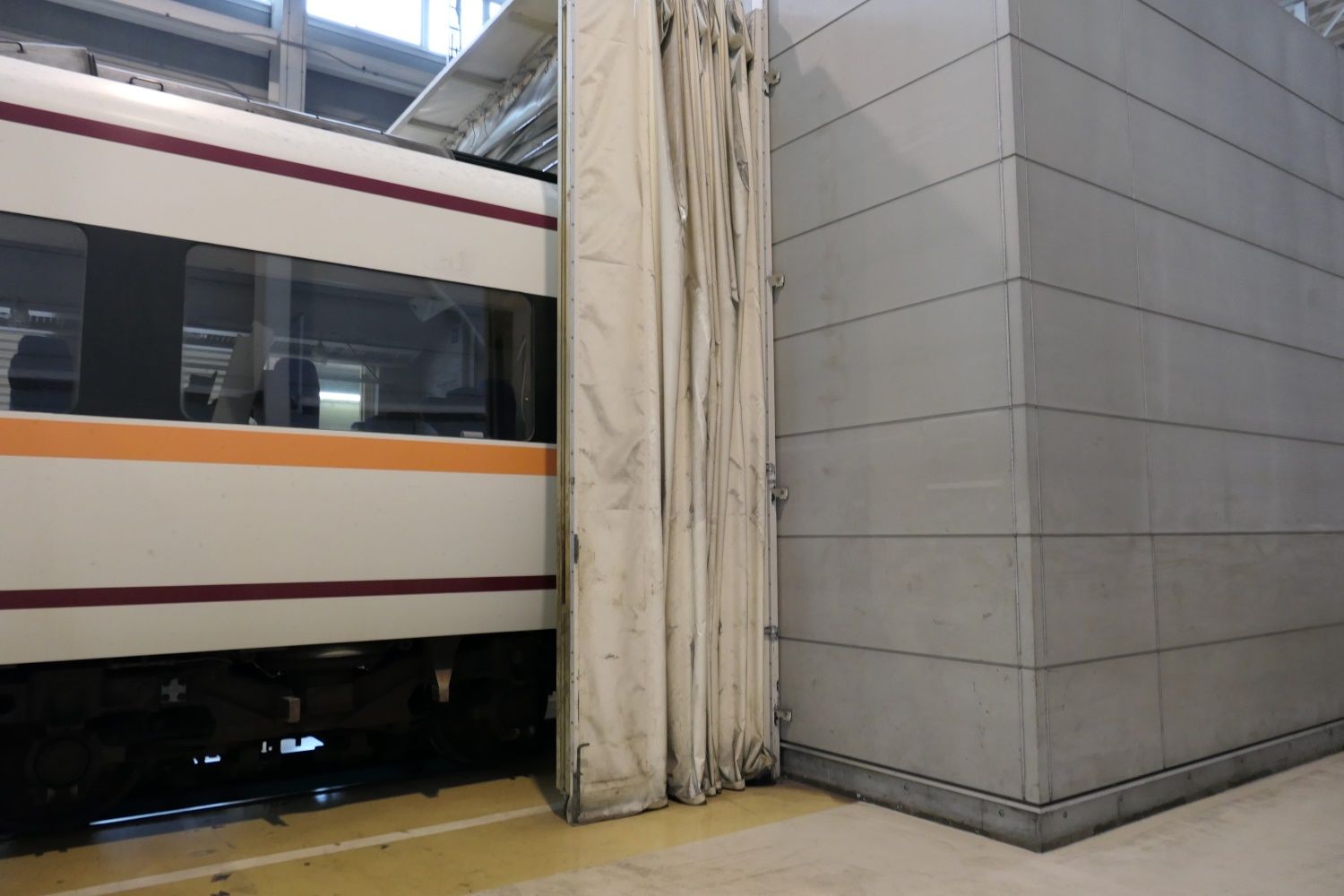 床下自動気吹装置に入っていく(記者撮影)