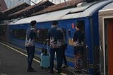 記事に戻る インドネシアに登場「豪華個室夜行列車」の集客力 フルフラット座席の「寝台車」、乗車率は9割超の写真一覧 コンパートメントスイートの乗客はホームでパーサーが出迎えてくれる(筆者撮影) 1/44 下に画像が続きます シックな青色が目を引くコンパートメントスイート客車。伊豆急行のTHE ROYAL EXPRESSを彷彿させる(筆者撮影) 2/44