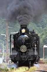 記事に戻る 走る産業文化財、「動態保存」蒸気機関車の軌跡 国鉄時代の「やまぐち号」から東武「大樹」までの写真一覧 下に画像が続きます C57形1号機が牽引する「やまぐち号」。客車はJR化後に導入された12系のレトロ調客車だ(撮影:南正時) 5/91