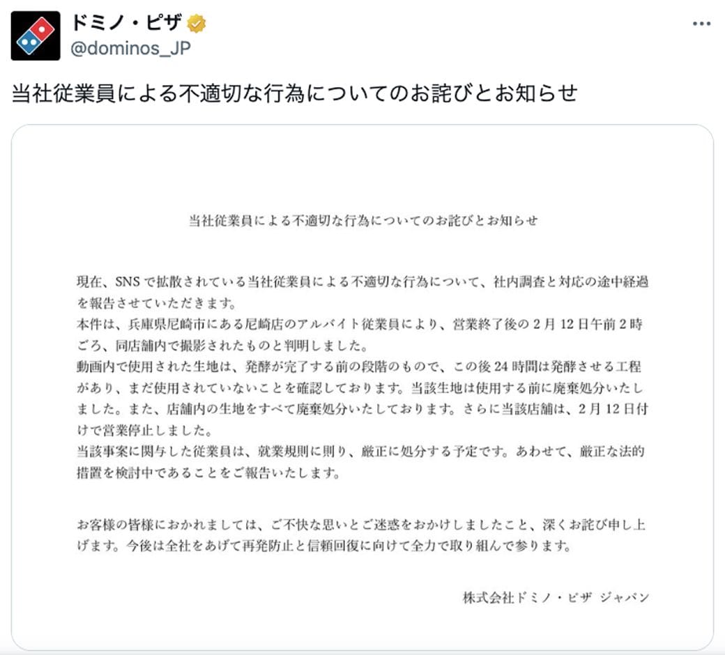 飲食チェーンで相次ぐ「バイトテロ」。ドミノ・ピザなど有名店で、不衛生行為をSNSに投稿するアルバイトの行動が社会問題化しています。過去の炎上や企業の対応強化を経ても、なぜ同様の事件は繰り返されるのでしょうか。その背景と対策を掘り下げます。(このリード文はAIが作成しました)