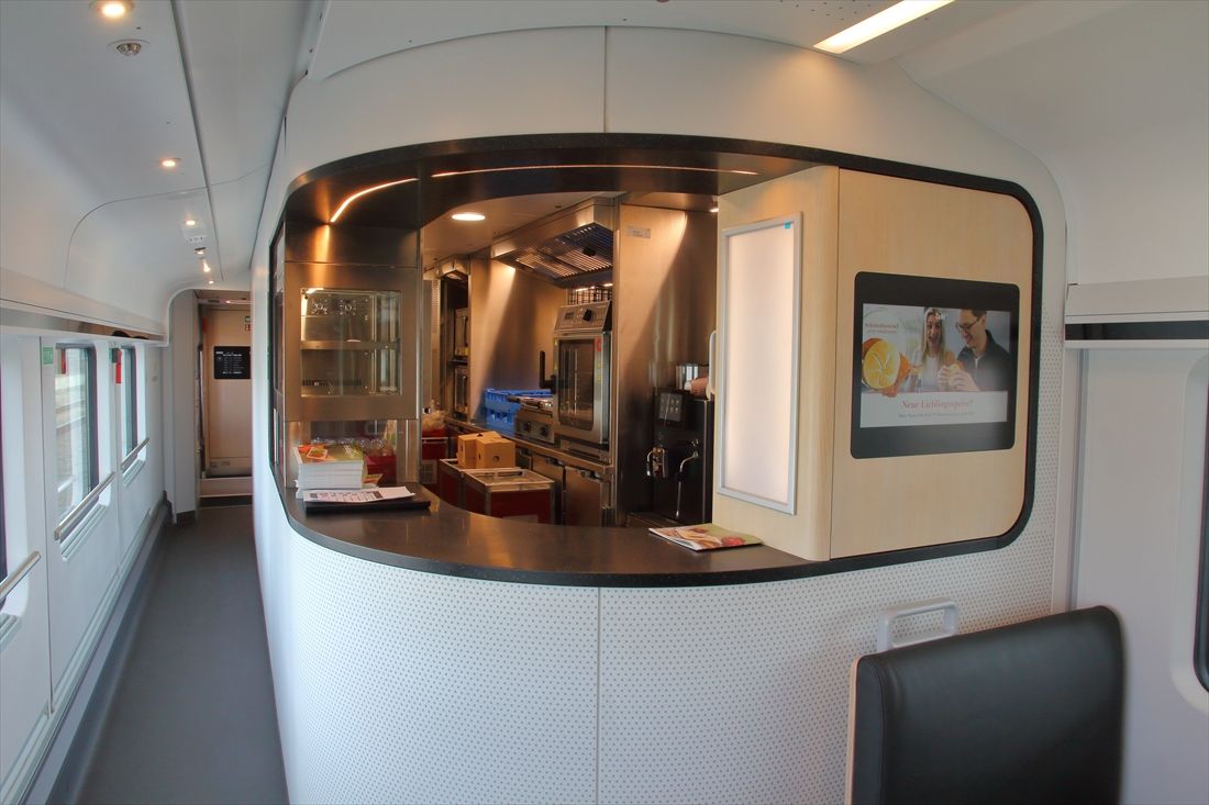 記事に戻る オーストリア鉄道「新型レイルジェット」の大進化 特急車両も「低床化」でバリアフリーを徹底の写真一覧 下に画像が続きます 食堂車の調理場。電子レンジなどの調理設備が備わる(撮影:橋爪智之) 35/51