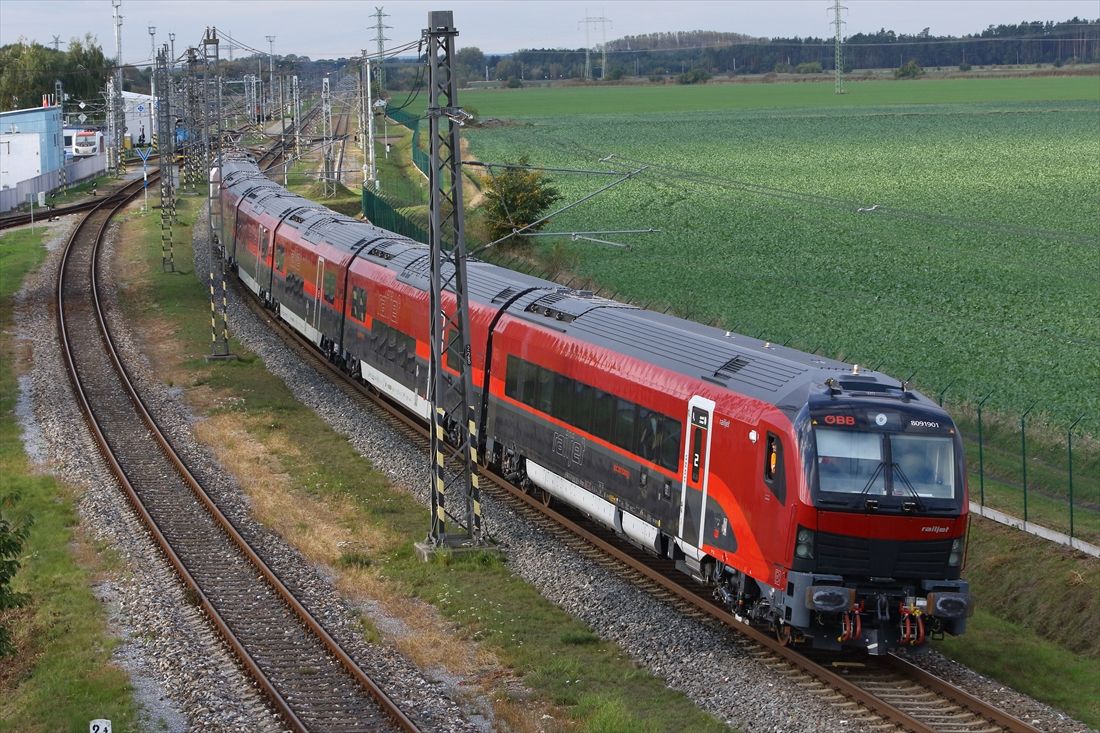 記事に戻る オーストリア鉄道「新型レイルジェット」の大進化 特急車両も「低床化」でバリアフリーを徹底の写真一覧 下に画像が続きます チェコのヴェリム試験線で試運転中の新型レイルジェット(撮影:橋爪智之) 6/51