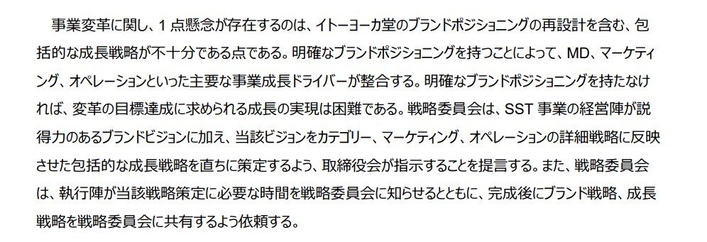 資料にも「イトーヨーカ堂のブランドポジショニングの再設計を含む、包括的な成長戦略が不十分である」との文言が確認できる(出所:セブン&アイホールディングスIR資料)