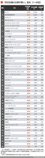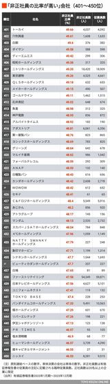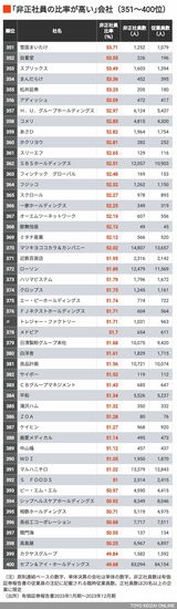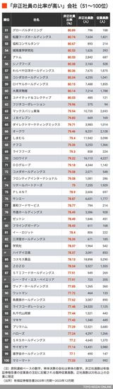 記事に戻る 「非正社員への依存度が高い」会社ランキング 全体に非正社員への依存度が増加する傾向の写真一覧 (写真: Fast&Slow/PIXTA) 1/12 下に画像が続きます 本記事に関連したさらに詳しいデータのほか『会社四季報』、企業、役員、大株主、地域、大学、小売店などの各種データを販売する「東洋経済データサービス」 。各種データのカスタマイズにも対応します。 2/12