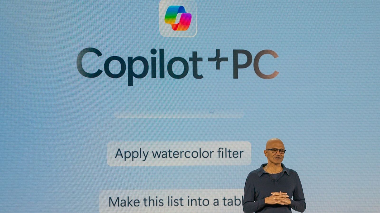新PCカテゴリー「Copilot+ PC」を発表する、マイクロソフトのサティア・ナデラCEO(筆者撮影)