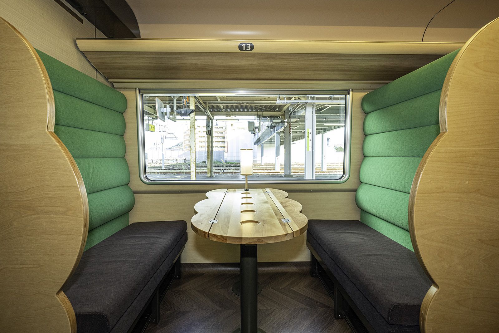 記事に戻る JR西の新型やくも、旧型「暗くて狭い」をどう克服? 目指したのは「我が家のようにくつろげる車内」の写真一覧 下に画像が続きます 出雲市方先頭車の1号車はグリーン車と半室ずつの合造車だが普通車区画はグループ向けのボックス席。窓は座席間隔が広いグリーン席と同じ寸法で縦のカーテンレールもないためワイドな風景を家族や仲間で楽しめる(写真:山下大祐) 3/3