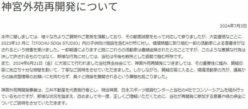 記事に戻る 「神宮外苑再開発」伊藤忠の声明の納得感の正体 どちらの意見が、理論とファクトからの主張かの写真一覧 私たち第三者の立場からしても重要視したいのは、理論とファクトだ。どちら側の意見が感情論ではなく、理論とファクトから主張されているかを吟味したい(写真:i-flower/PIXTA) 1/5 下に画像が続きます 2/5
