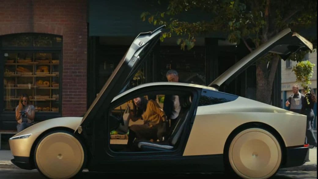 記事に戻る テスラ完全自動運転EV発表も実現性に疑問の声 2027年までの販売を宣言も技術と規制のハードルに直面の写真一覧 下に画像が続きます サイバーキャブで買い物に出かける様子(写真:Tesla, X) 8/17