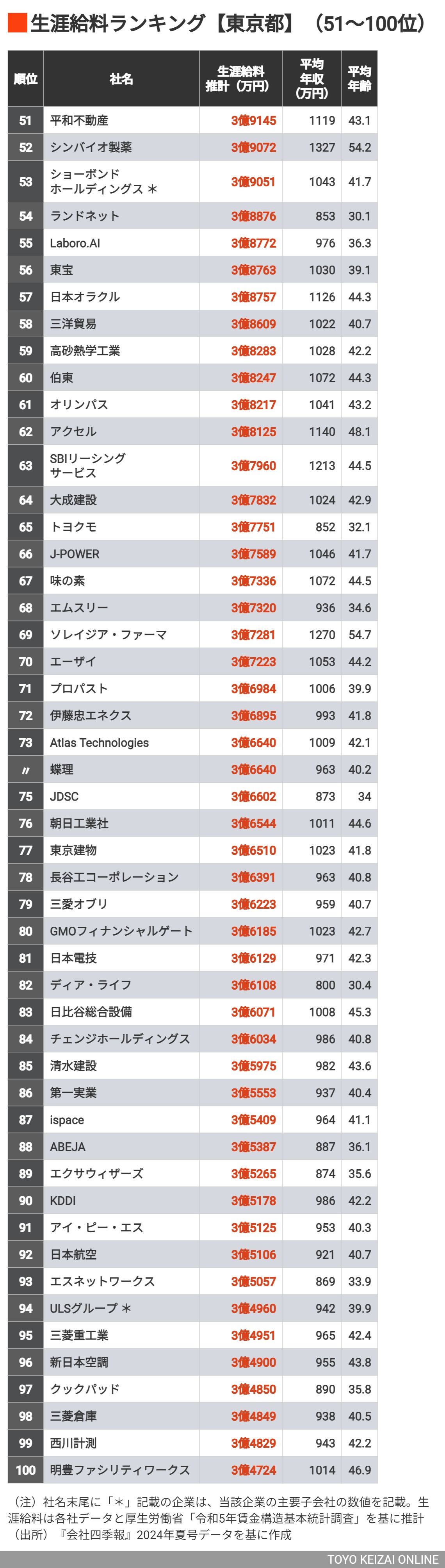 生涯給料が高い「東京都トップ500社」ランキング 3億円を超える生涯給料の会社はどれほどあるかの写真一覧