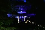 石山寺・多宝塔が紫色にライトアップ(筆者撮影)