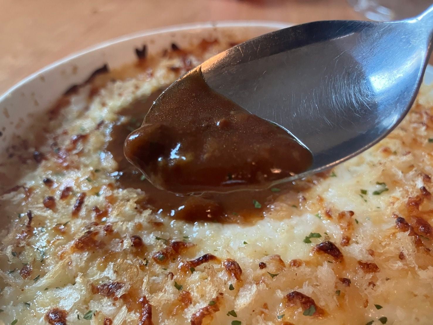 リュウジさんがレビューした「3種チーズとたっぷりソースのミートドリア」は「ミートはいない」との評価だったが、この商品でも小さいのが少量入っている感じだった(編集部撮影)