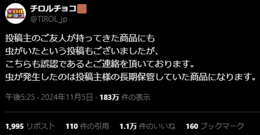 チロルチョコ「虫混入?」騒動対応が見事すぎた訳 迅速な対応と、消費者コミュニケーションの妙の写真一覧
