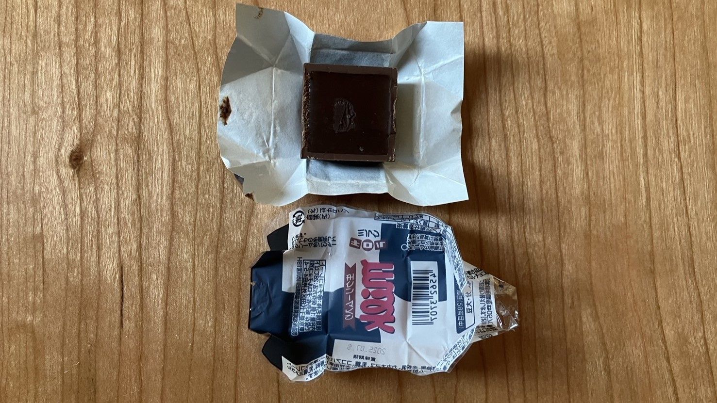 チロルチョコは、2重に包装されている。チョコレート製造時に虫が混入してしまうならわかるものの、包装後に入り、コンビニやスーパー等で気づかぬうちに販売されることは、現実的に考えてあまりないような気も…?(編集部撮影)