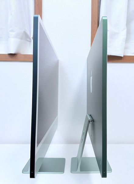 記事に戻る 新発売「iMac」と「Mac mini」1週間使ってみた結果 あらゆる動作が3〜5倍以上速くなったと感じるの写真一覧 下に画像が続きます 側面から見たiMac。M3搭載モデル(左)とM4搭載モデル(右)では、色の変更とカメラサイズの違い以外のデザインは同じだ(筆者撮影) 4/9