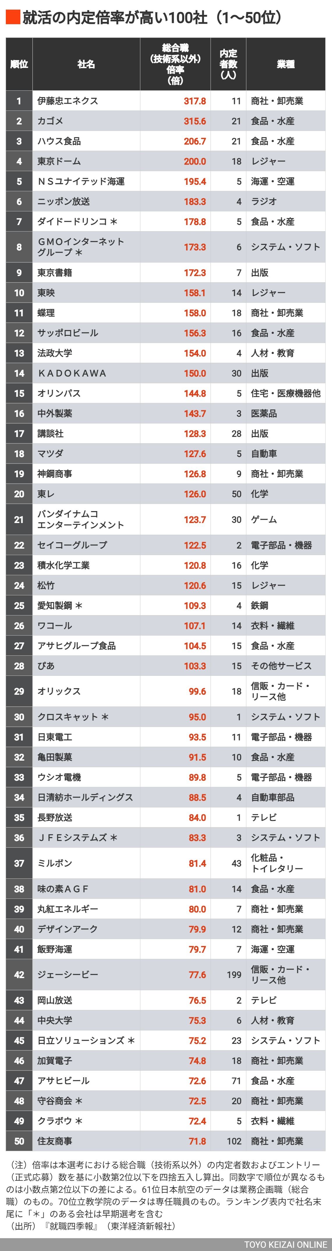 記事に戻る 「就活で内定競争倍率が高い」100社ランキング "売り手市場"の新卒就活で応募殺到の企業は?の写真一覧 新卒の内定競争倍率が高い会社はどこか (写真:Fast&Slow/PIXTA) 1/3 下に画像が続きます 2/3