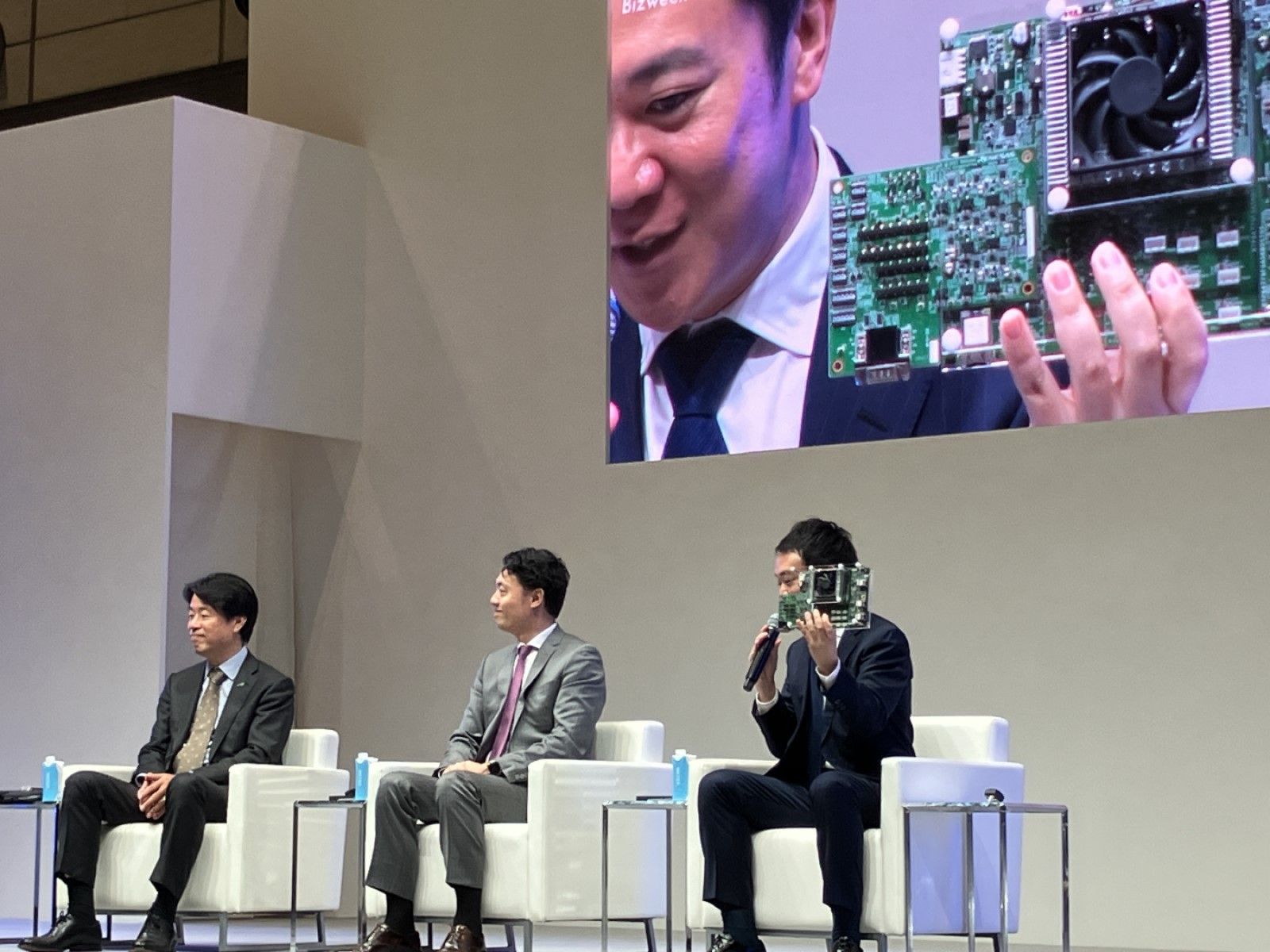 記事に戻る ティアフォー社長が語る「自動運転」日本の勝ち筋 ソフトだけでなくデータのオープン化がカギの写真一覧 下に画像が続きます 10月の「ジャパンモビリティショー」でのパネルディスカッションで開発キットを紹介する加藤社長(右)、中央はAI研究で有名な東京大学の松尾豊教授、左は自動車技術会の中畔邦雄会長(日産自動車副社長)(筆者撮影) 3/6