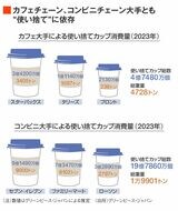 記事に戻る カフェ、コンビニが問われる「脱使い捨て」の責任 グリーンピースがごみ大量排出の実態を解明の写真一覧 下に画像が続きます 「リソースポジティブ」を標榜するスターバックス。使い捨て比率の低減が急務だ(記者撮影) 4/5