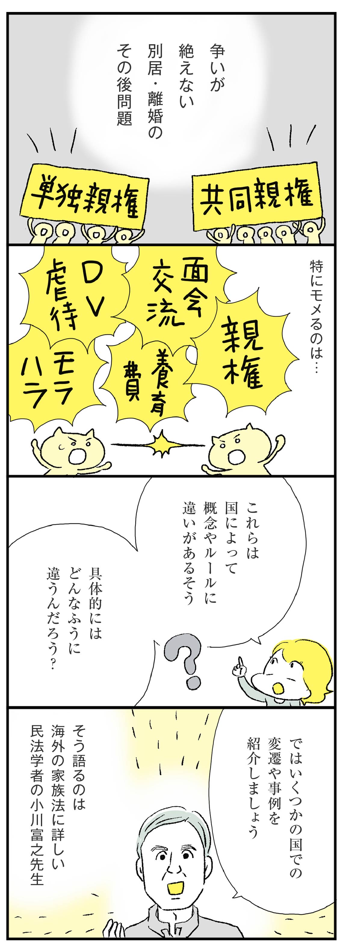 家庭内の分担や育児をめぐる言い争いが、家族を「つかれる存在」に変えてしまう現代。離婚と親権の問題や、養育費不払い、海外事例から見える日本の課題とは?連載では、専門家の視点を交え、家族が「つかれない」関係を築くためのヒントを探ります。家族の形が変わる中、本当に大切なことは何なのでしょうか?(このリード文はAIが作成しました)