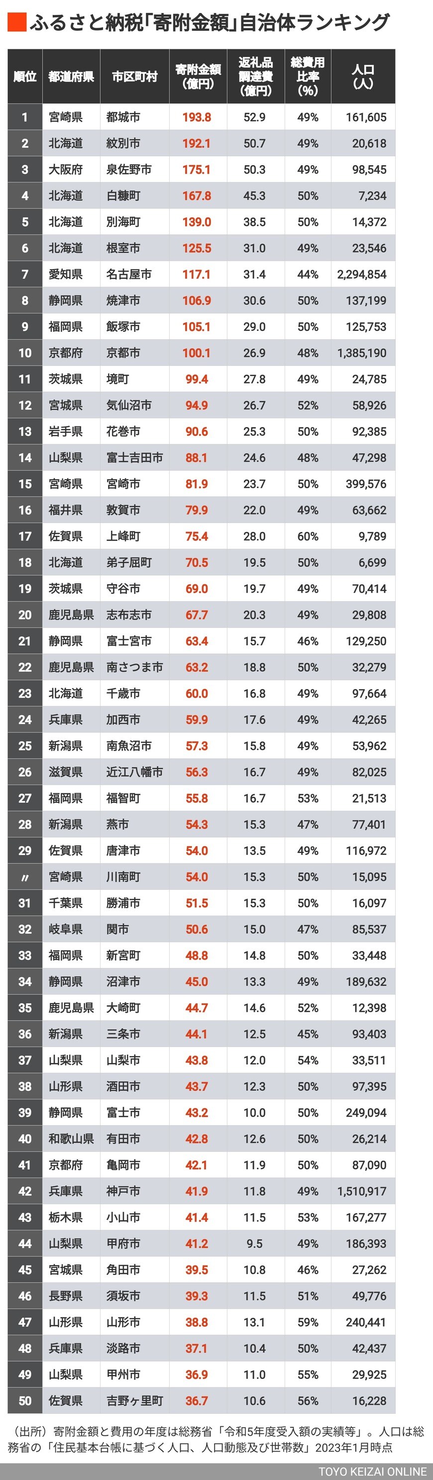 記事に戻る ふるさと納税「寄附金額」自治体ランキングTOP200 牛肉や魚介の返礼品が人気の市が上位にランクインの写真一覧 令和5年度に寄附金額をもっとも多く集めた宮崎県都城市(写真:namio/PIXTA) 1/5 下に画像が続きます 2/5