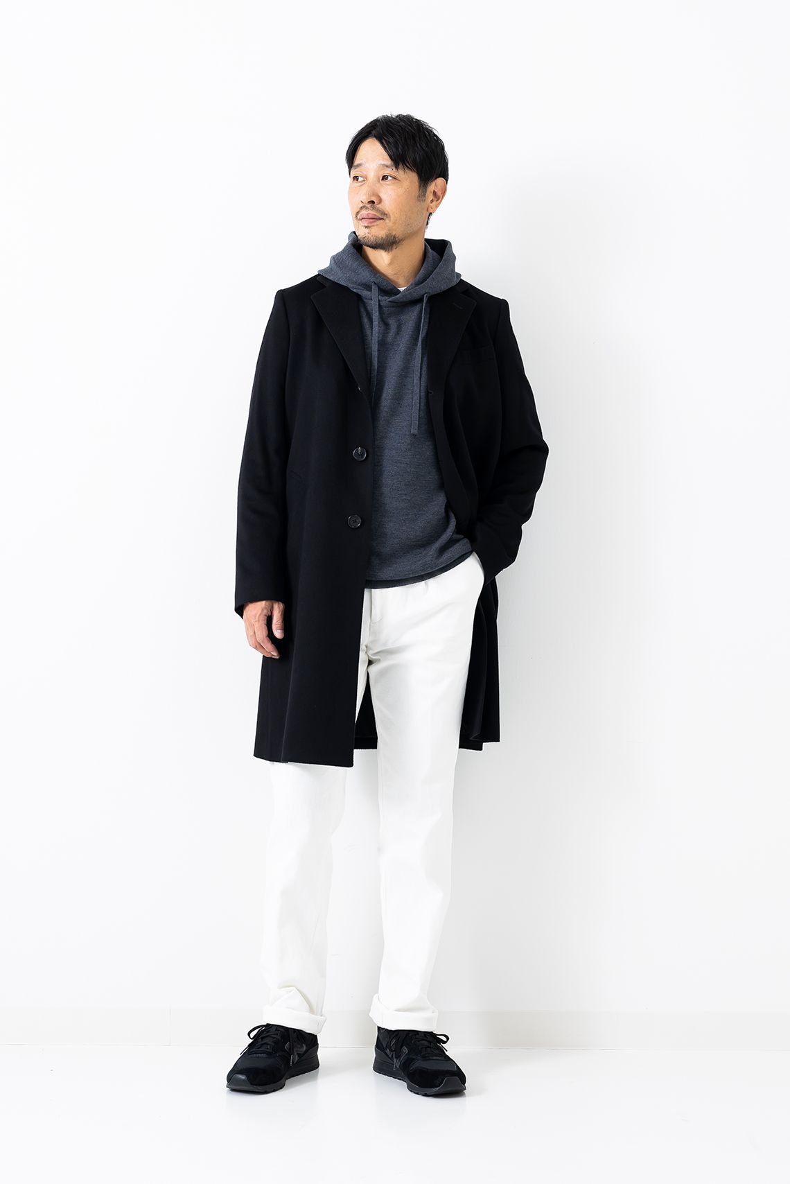 記事に戻る 「私服になると残念」を防ぐ、冬のコート着こなし術 休日に出かける機会が増える年末、何を着る?の写真一覧 ドレス度の高いチェスターコートはパーカーでカジュアルダウン。コート¥98,890(ヒルトン/洋服の青山 池袋東口総本店 03-5952-7201)ニットパーカー¥90,200(ジョン スメドレー/リーミルズ エージェンシー 03-5784-1238)パンツ¥35,200(エストネーション/エストネーション 0120-503-971)スニーカー¥16,280(ニューバランス/ニューバランスジャパンお客様相談室 0120-85-7120)(撮影:今井康一) 1/6 下に画像が続きます フード付きのパーカーを組み合わせて休日らしい装いに(撮影:今井康一) 2/6