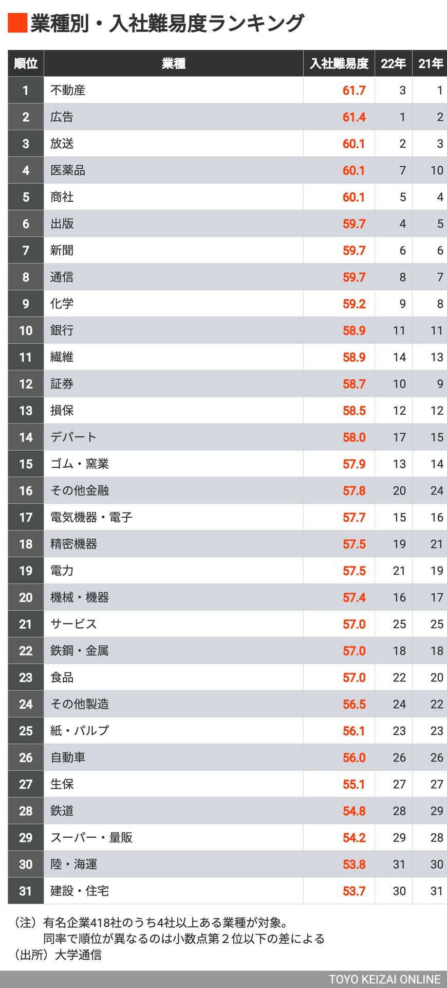 コロナ禍を経て回復基調にある大学生の就職市場。しかし、有名・大企業への入社は依然としてハードルが高いのが現実です。本記事では、大学別の難易度データをもとに入社が難しい企業ランキングを徹底解説。外資系コンサルや大手商社、不動産業界の最新動向を交え、2024年の人気就職先の実態に迫ります。なぜ今、難関企業への就職がこれほど競争的になっているのでしょうか。(このリード文はAIが作成しました)