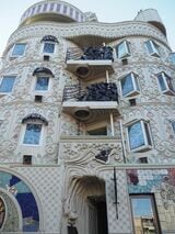 「ドラード和世陀」の外壁は、コンクリート彫刻が施されている(写真:編集部撮影)