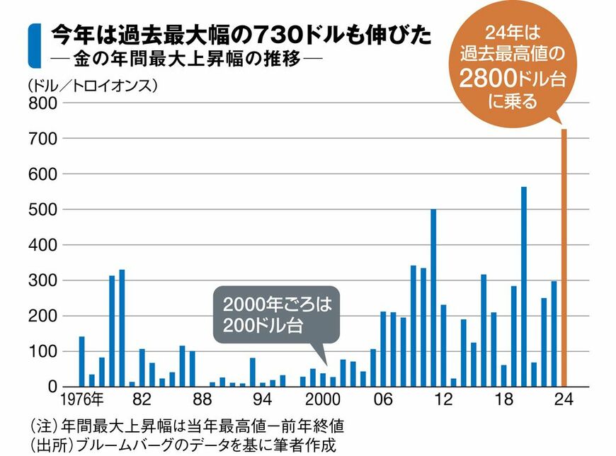 記事に戻る 金はまだ「買い」!2025年に3000ドル到達も "金利がつかない"のに金の価格が上がるワケの写真一覧 金価格は歴史的な上昇が続く。アメリカの利下げも金の魅力を高めている(写真:時事) 1/4 下に画像が続きます 2/4