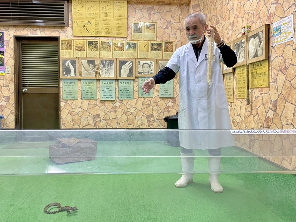 記事に戻る 「奄美にあるハブ屋」が3世代に渡って続く背景 時流読み変化続けるハブ屋のビジネス(前編)の写真一覧 下に画像が続きます ハブを使ったショー「ハブと愛まショー」で説明をする2代目の原武広さん。笑いあり、学びありのトークに引き込まれる(写真:筆者撮影) 4/4