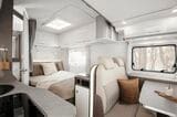 記事に戻る 日本初上陸、ドイツ製キャンピングカー注目の訳 日本でも扱いやすいサイズが魅力「T5900FB」の写真一覧 下に画像が続きます エトルスコのキャンピングカー「T5900FB」(筆者撮影) 2/24