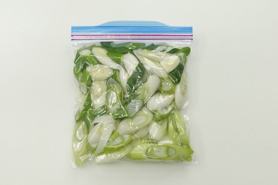 斜め厚切りのねぎ。冷凍することで短い加熱でもすぐに火が通り、とろりと柔らかく(写真:筆者提供)