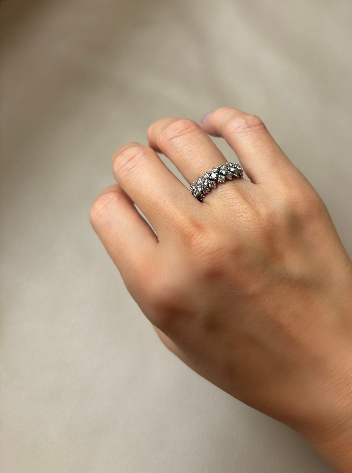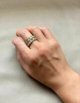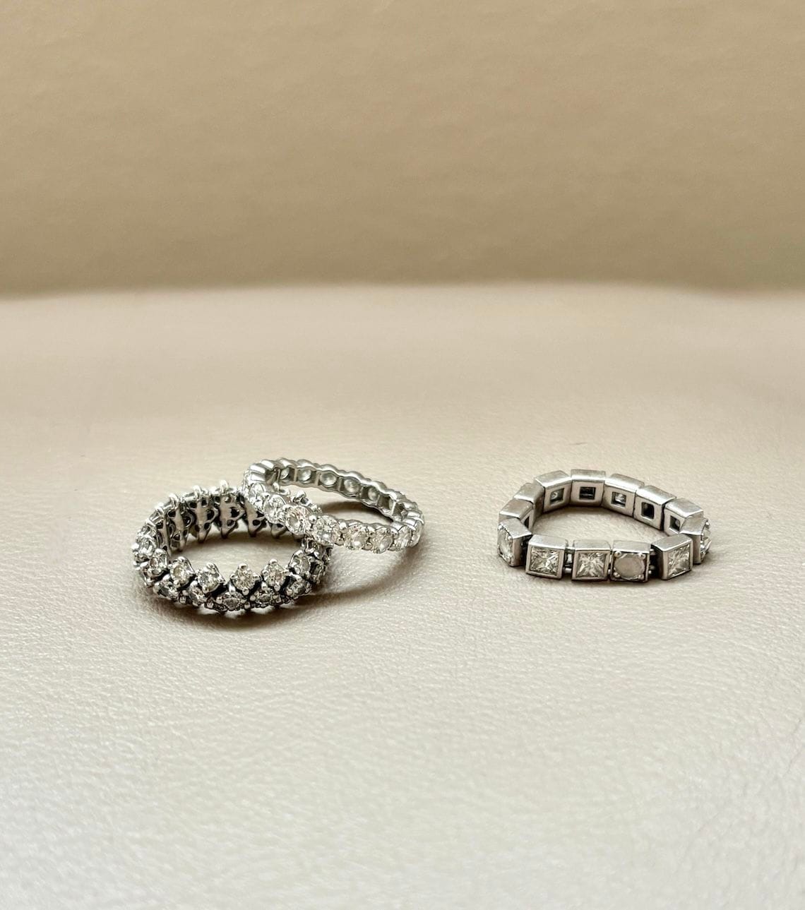 記事に戻る 人生の節目「エタニティリング」の煌めきをまとう 11個のコレクションに見る、自分らしい選び方の写真一覧 【ブランドリング】(左の2本)ハリー・ウィンストンのフルエタニティ、(右)ティファニーのレアなフルエタニティ(筆者撮影) 1/14 下に画像が続きます ハリー・ウィンストンのフルエタニティ。私の初めてのハリー・ウィンストンは「フレキシブル」リングでした。今はもう販売終了のリングですが、アーム部分がほのかに動く作りになっていて、指にしっくりなじむデザインです(筆者撮影) 2/14