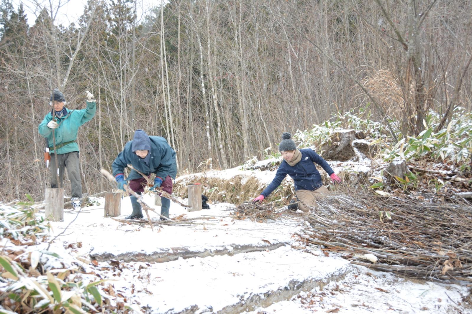 記事に戻る 「死ぬのが楽しみに」ふるさと難民が森で得た希望 岩手「いのちを還す森」 埋葬予定の森を手入れの写真一覧 下に画像が続きます 枝打ちした枝を集め、バイオネストを編む参加者(写真:筆者撮影) 5/12