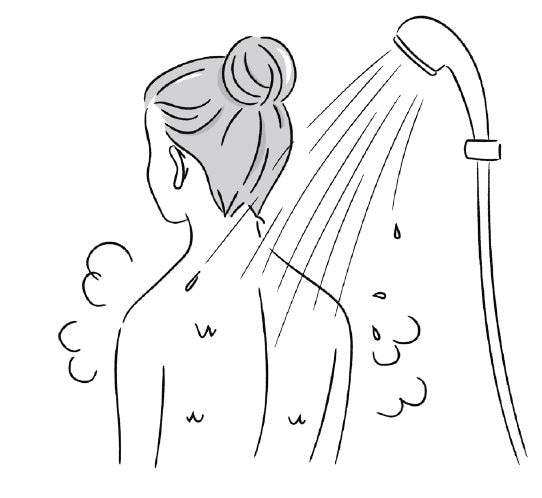 シャワーを首の後ろに当てる様子