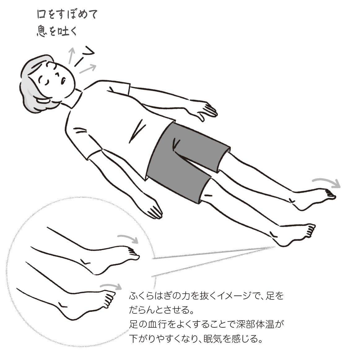 朝まで起きない「ぐっすりストレッチ」基本の3つ 眠るタイミングに向けて深部体温を下げる方法の写真一覧