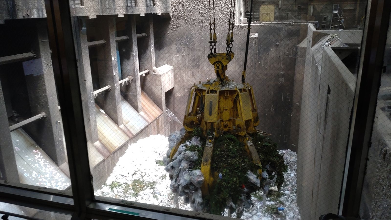 清掃車2台分のごみをつかめる「ごみクレーン」(写真:筆者撮影)