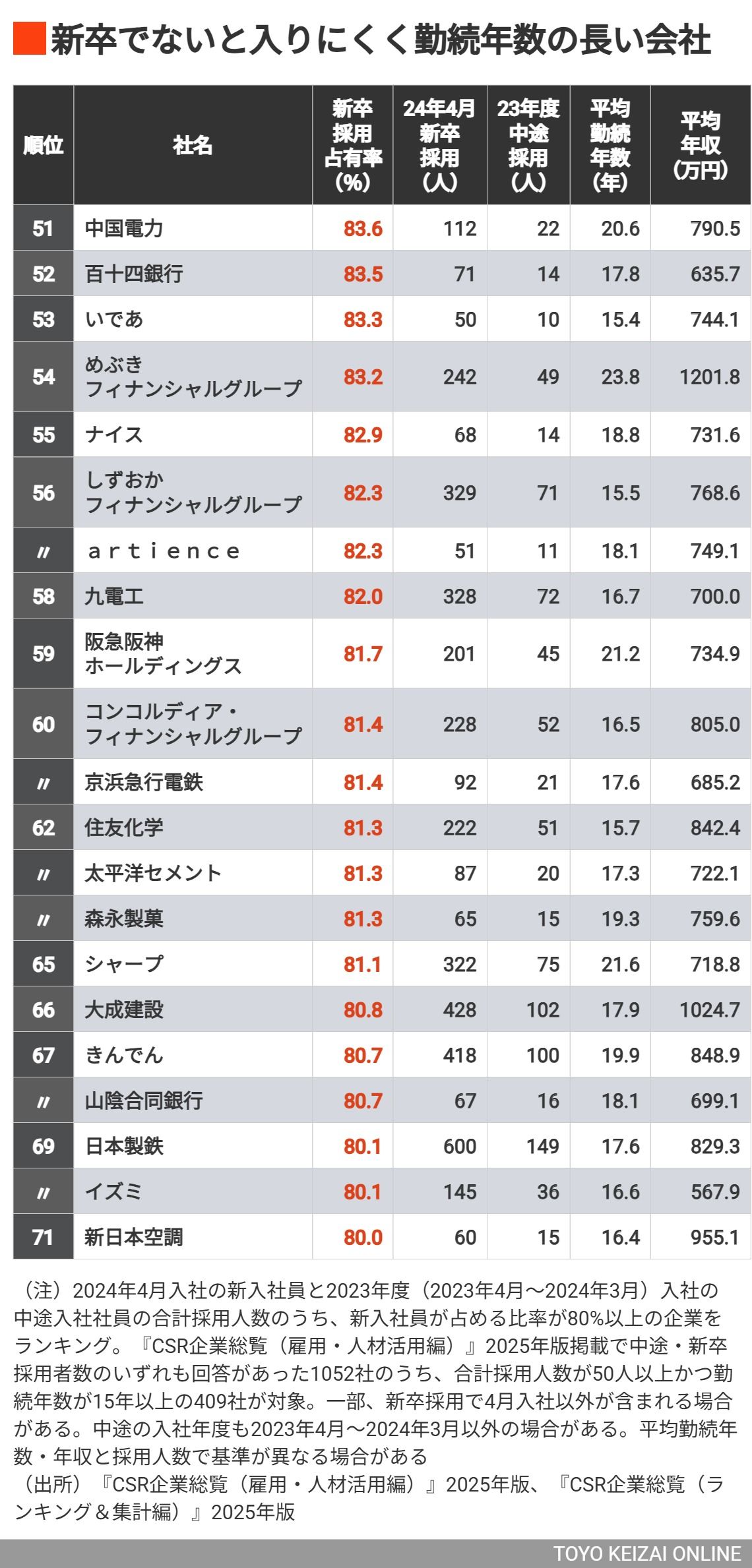 新卒でないと入りにくいが、勤続年数は長い71社 1位は100%!新卒採用占有率を調査した結果の写真一覧