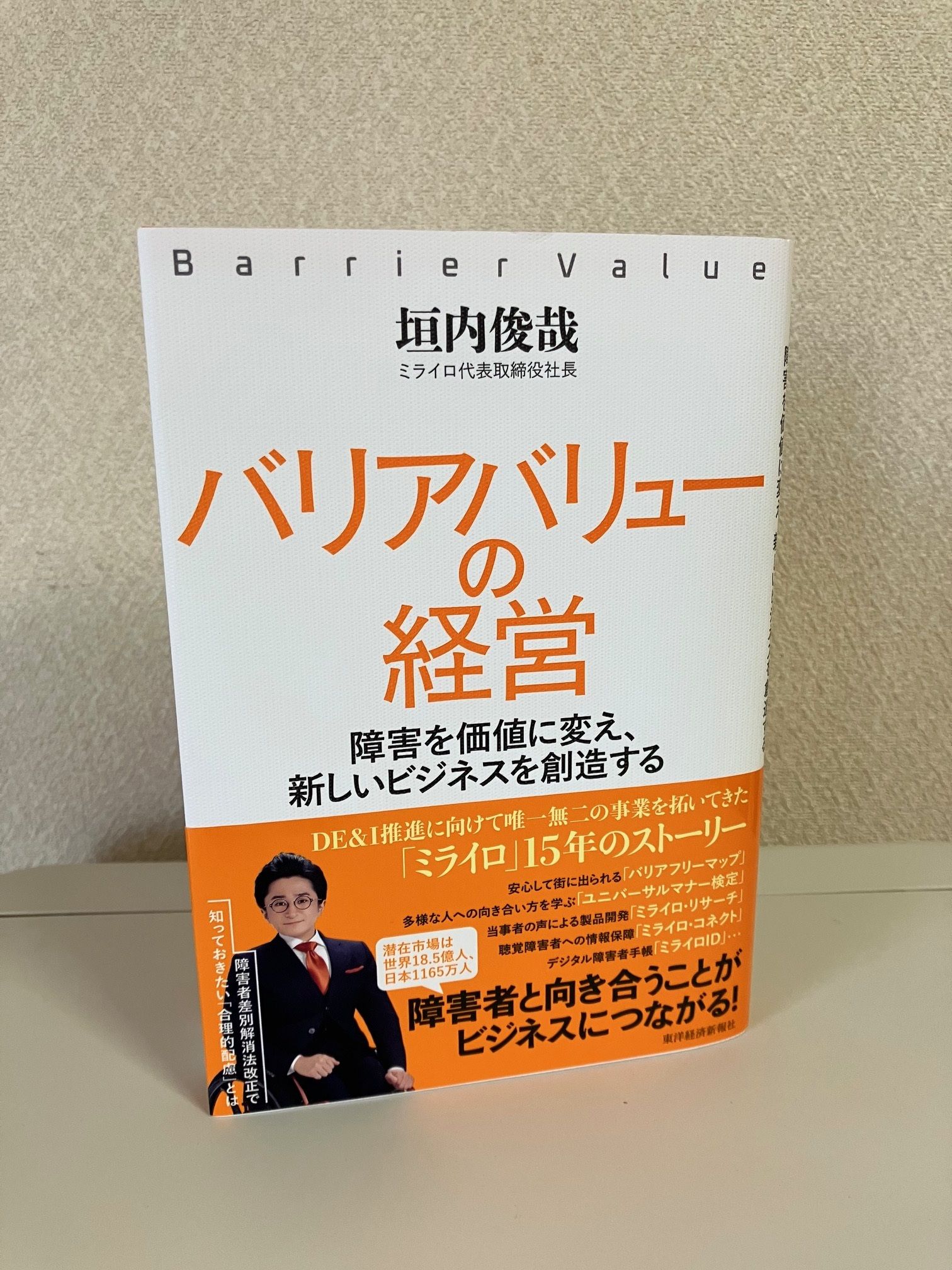 垣内氏の著書『バリアバリューの経営 ―障害を価値に変え、新しいビジネスを創造する』(東洋経済新報社刊)