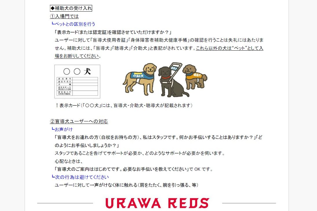 浦和レッズ補助犬受け入れマニュアル(一部抜粋)