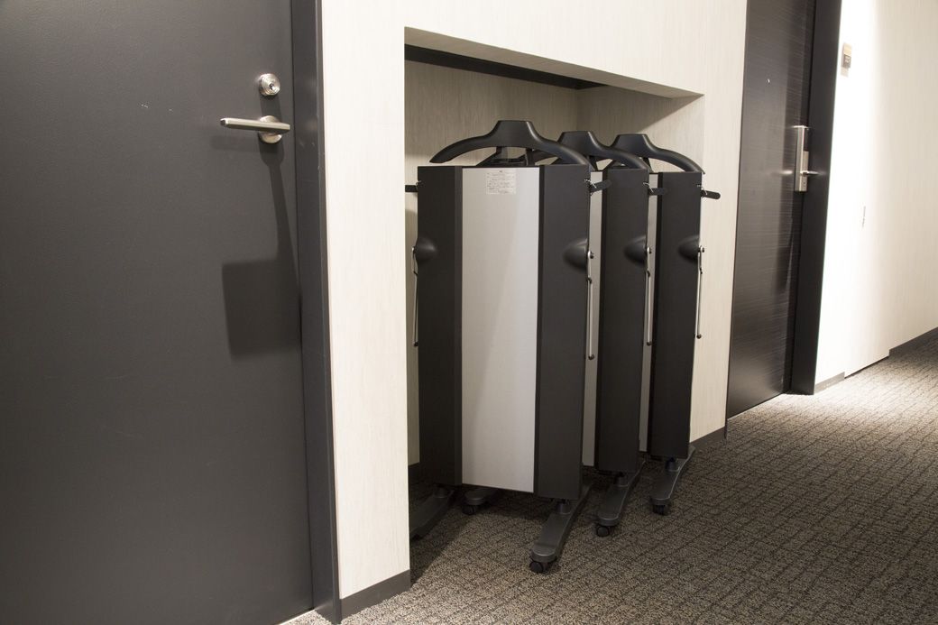 記事に戻る 静鉄プレジオ「トレンドに逆行」した部屋作りの妙 部屋が狭くなるビジホ業界で広い部屋を貫く理由の写真一覧 下に画像が続きます 「静鉄ホテルプレジオ京都四条」の廊下に置かれたキャスター付きのズボンプレッサー。必要なゲストは各自で客室に持って入る(写真提供:筆者撮影) 8/8