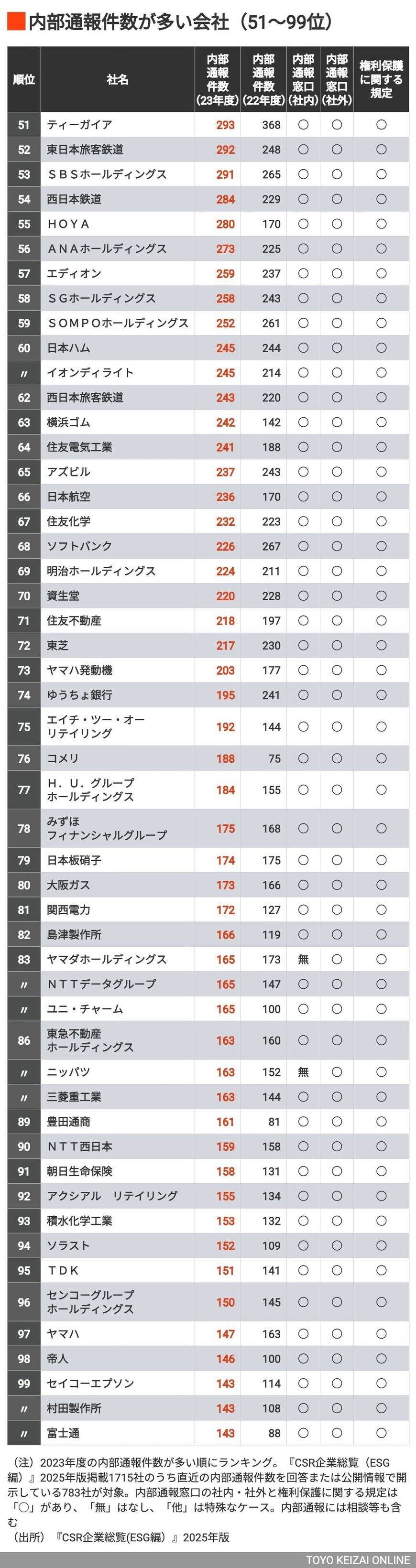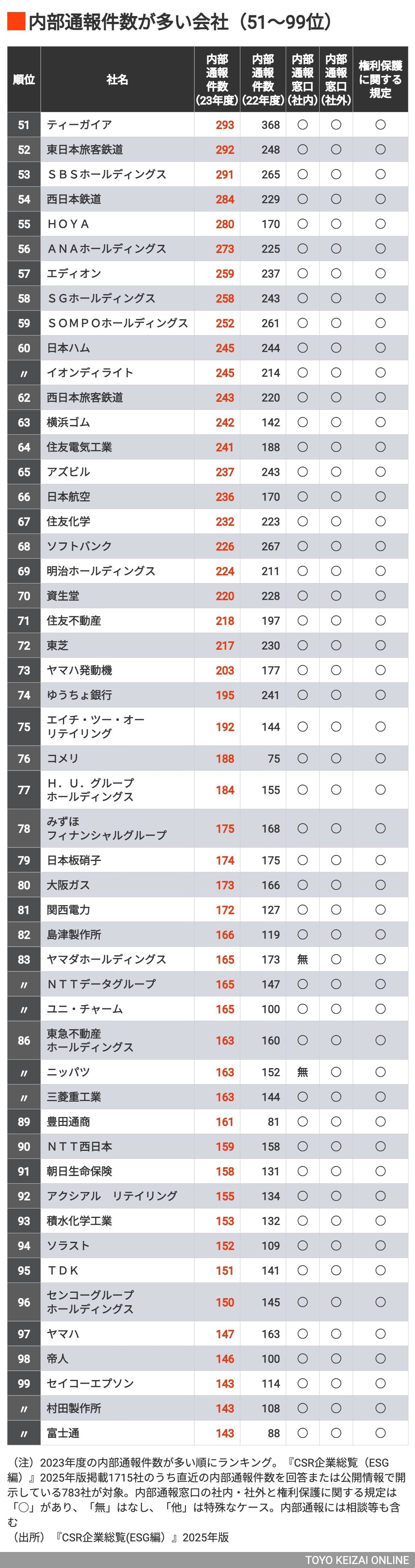 「内部通報件数が多い企業ランキング」TOP100 フジテレビの問題で企業ガバナンスに注目の写真一覧