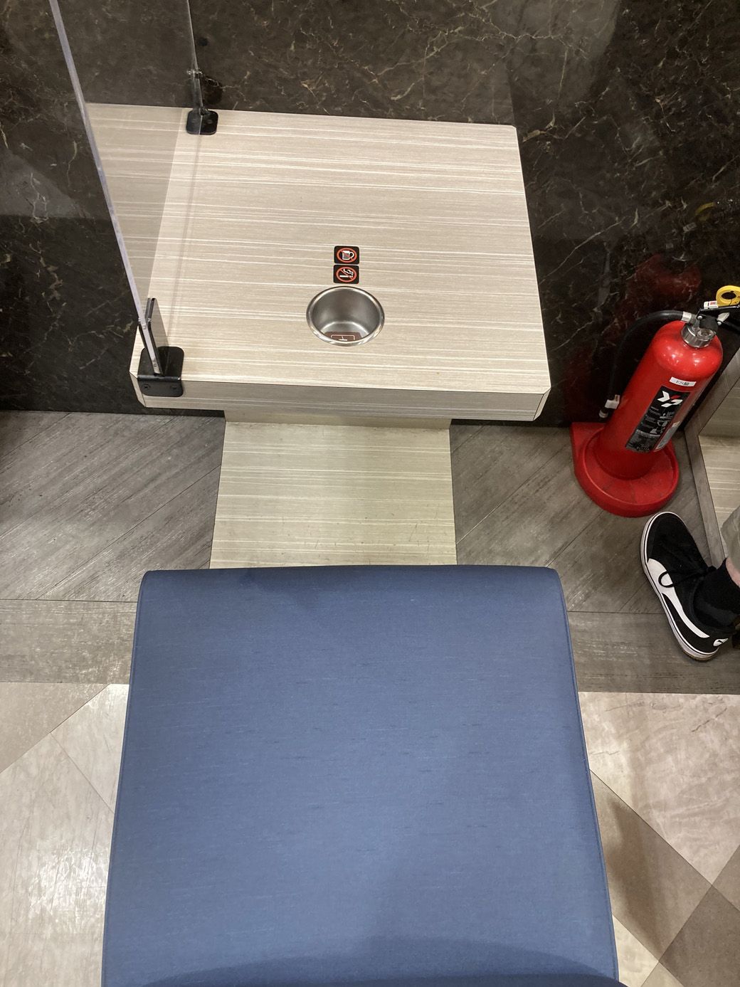 一瞬何だか分からない穴がある、1人席(筆者撮影)