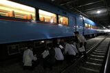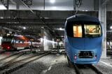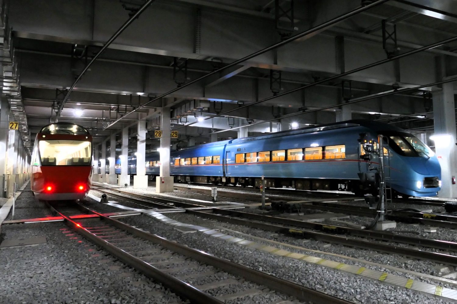 小田急電鉄の喜多見電車基地。今回は青いロマンスカー・MSE(60000形)で実車訓練をする(記者撮影)