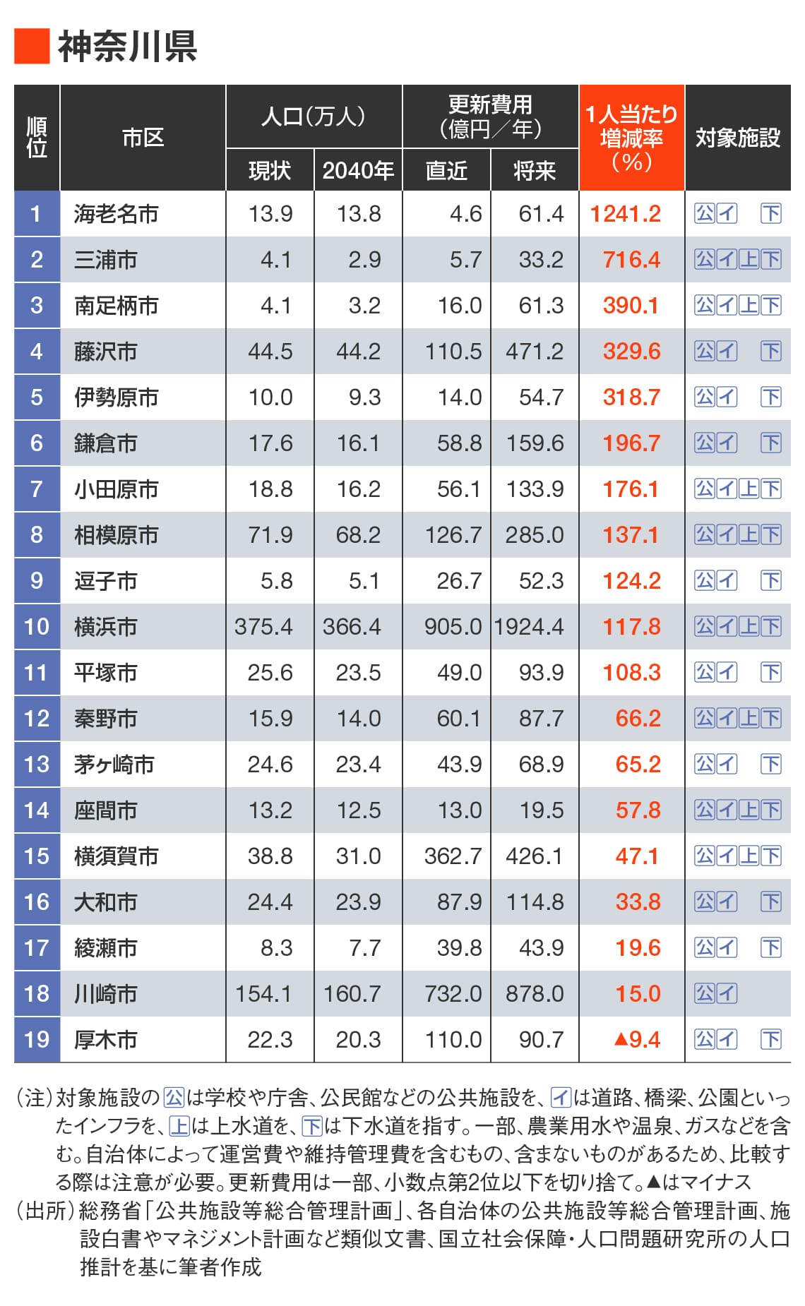 「インフラ更新が心配」な街ランキング・南関東編 更新費用が2倍以上に膨らむ自治体は全体の4割の写真一覧